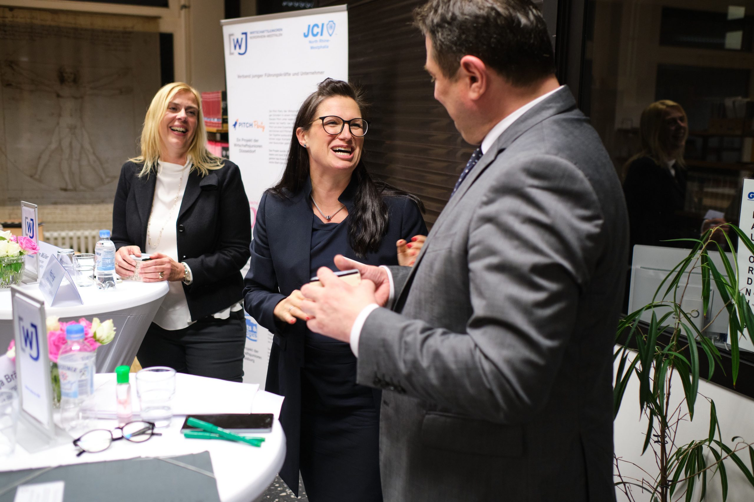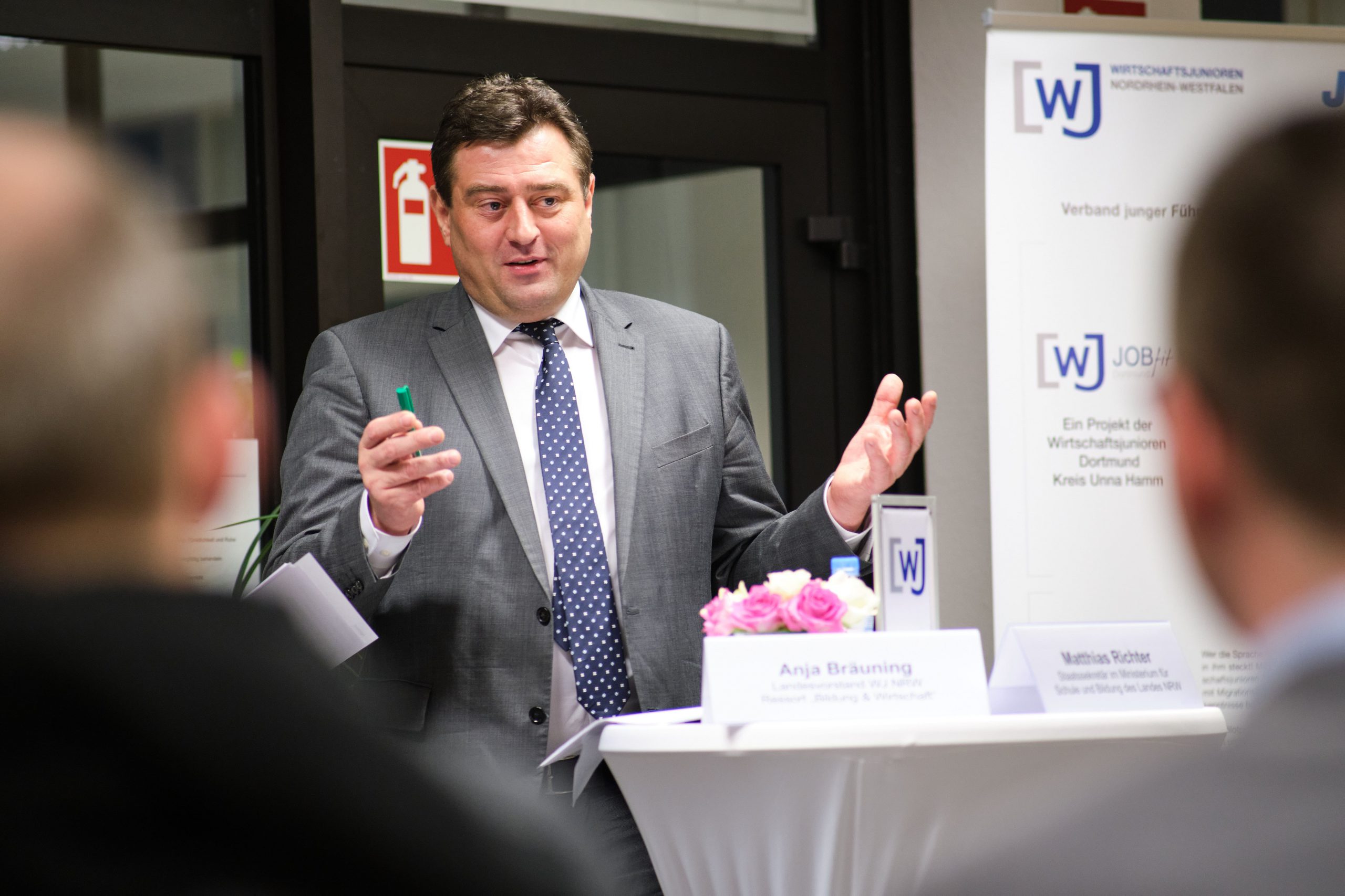 Die Wirtschaftsjunioren sagten zu, sich auch weiterhin konstruktiv in die Weiterentwicklung des Schulfachs Wirtschaft einzubringen und in den Juniorenkreisen ihre Aktivitäten, wie beispielsweise die in vielen Städten und Regionen durchgeführten Bewerbertrainings, zu verstärken. „Ziel müsse sein, das Fach Wirtschaft an den Schulen durch möglichst große Praxisanteile und Erfahrungsberichte von Unternehmerinnen und Unternehmern erlebbar zu machen“, so Anja Bräuning, Moderation der Talkrunde und verantwortlich für das Ressort „Bildung & Wirtschaft“ im WJ NRW Landesvorstand.