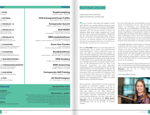 Nach Begrüßungsworten des Landesvorsitzenden Thomas Müller richtete mit Stephan Kunz ein wichtiger und langjähriger Partner von der NRW Bank ein Grußwort an alle Teilnehmerinnen und Teilnehmer. Anschließend berichteten zuerst der Landesvorsitzende sowie alle Ressortinhaber über ihre Arbeit im laufenden Jahr. Besonders emotional waren die Berichte der langjährigen Landesvorstandsmitglieder Florian D. Schulz (Mitglieder & Training) und Patrick Hahne (Politik & Wirtschaft), die über mehrere Legislaturperioden ihre Ämter ausgefüllt haben und sich nun in den Wirtschaftsjunioren-Ruhestand verabschiedet haben. Auch Maurice Dietrich (Innovation & Ressourcen) sowie Vincent Sander (Unternehmertum) stellen ihre Ressorts zur Verfügung. Vincent Sander bleibt den Wirtschaftsjunioren jedoch in bedeutender Rolle erhalten, denn er schließt sich dem Bundesvorstand der Wirtschaftsjunioren Deutschland an. Der Landesvorstand NRW bedankt sich beim Landesvorsitzenden sowie allen Ressortinhabern für ihre großartigen Leistungen, ihren unermüdlichen Einsatz und freut sich nach Jeannine Budelmann (stellvertretende Bundesvorsitzende) über nun zwei starke Vertreter im Bundesvorstand!