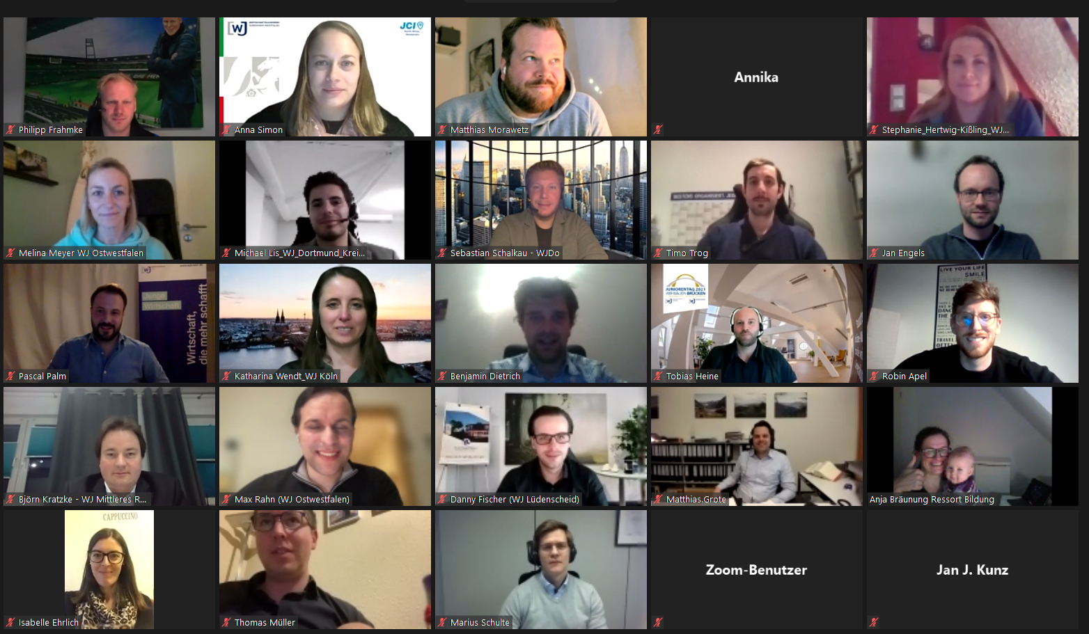 Mit den Worten: „26 Teilnehmer ist eine herausragende Quote für eine digitale Veranstaltung am Dienstagabend!“ leitet Dr. Julius Busold, Landesvorsitzender der Wirtschaftsjunioren 2021 in den ersten gezwungenermaßen digitalen Kreissprecher-Summit (KSSI) ein.