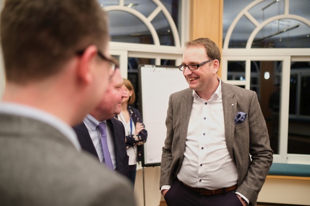 Am Freitagabend begrüßten die Wirtschaftsjunioren Lutz Lienenkämper, Minister der Finanzen des Landes NRW, zur traditionellen Gesprächsrunde. Impulse für die Digitalisierung, den Ausbau der Infrastruktur und für eine Qualitätssteigerung in der Kinderbetreuung – ganz ohne Neuverschuldung: Mit diesen Eckpunkten konnte der Haushaltsplan 2020 von Finanzminister Lienenkämper die Wirtschaftsjunioren grundsätzlich überzeugen. Intensivere Diskussionen waren jedoch die im Koalitionsvertrag der schwarz-gelben Landesregierung angekündigten Entlastungen bei der Grunderwerbssteuer sowie ein vorgesehenes Budget von rund 180 Mio. Euro für die Digitalisierung im Bereich der Landtagsverwaltung. Breites Lob erhielt der gut gelaunte Minister von den jungen Unternehmern und Führungskräften für die Stärkung der Kita-Finanzierung im laufenden Haushalt der Landesregierung.
