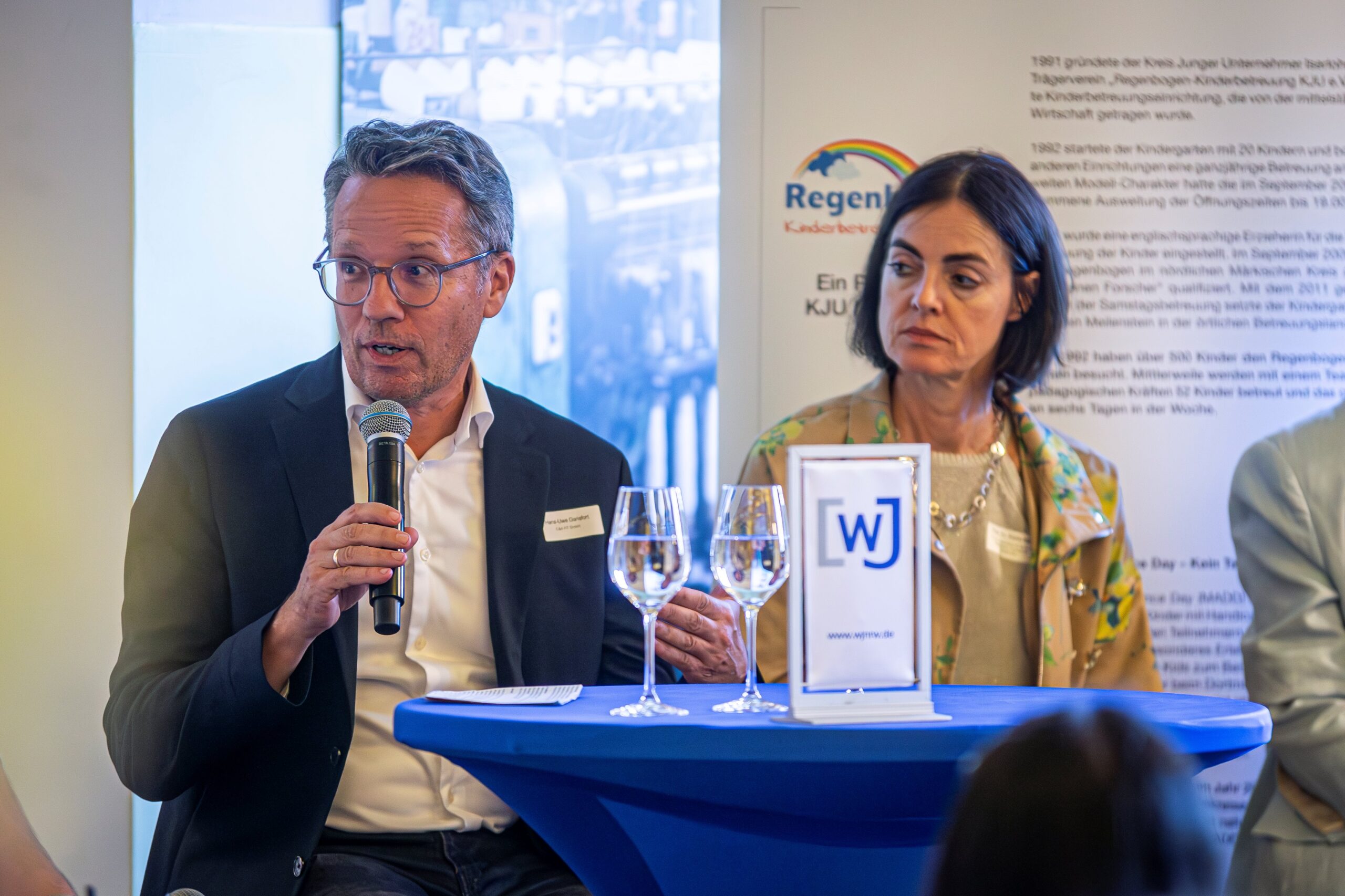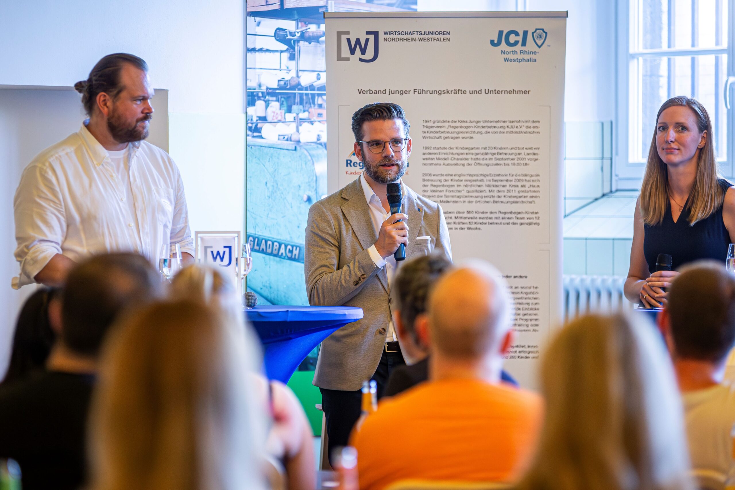 Moderiert wurde die Diskussionsrunde von Simone Claßen (Ressort Innovation & Zukunft im WJNRW-Landesvorstand) sowie Matthias Morawetz (Ressort Kommunikation im WJNRW-Landesvorstand). Die Wirtschaftsjunioren NRW bedanken sich ganz herzlich bei C&A FIT für die Möglichkeit der Unternehmensbesichtigung sowie bei der Wirtschaftsförderung Mönchengladbach und Noi! Catering für die außerordentliche Unterstützung bei der Realisierung des ersten Fair Fashion Events.