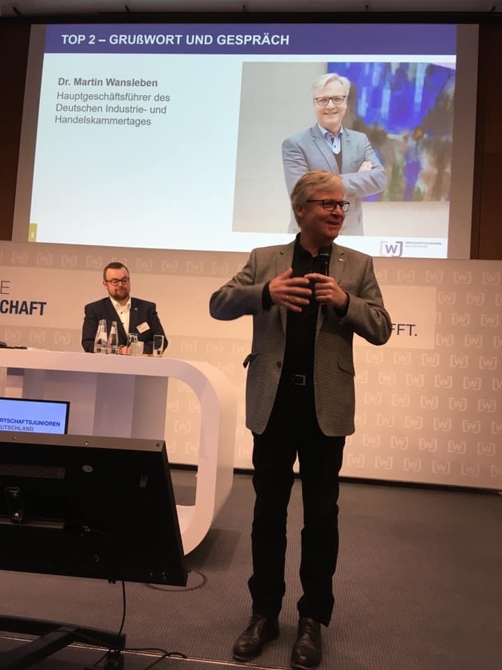 Nur zwei Tage später sprach Dr. Martin Wansleben gemeinsam mit dem neuen WJ-Bundesvorsitzenden Sebastian Döberl beim traditionellen Kreissprechertreffen zu den Wirtschaftsjunioren. Rund 230 Kreissprecherinnen und -sprecher sind der Einladung der Wirtschaftsjunioren Deutschland nach Berlin gefolgt – auch NRW war wieder besonders stark vertreten und freut sich ganz besonders über die großartigen Auszeichnungen an die Juniorenkreise WJ Solingen (1. Platz, Kreise bis 25 Mitglieder) sowie KJU Iserlohn (3. Platz, Kreise über 50 Mitglieder) beim Bundeswettbewerb „Aktivster Kreis“. Auf geht’s 2020!