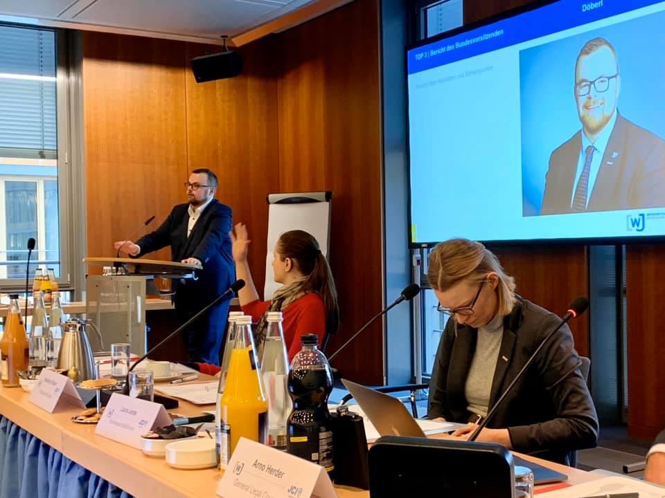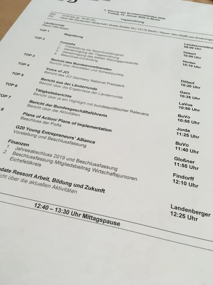 Zum Auftakt in das neue Juniorenjahr 2020 blickten zunächst die Kreis- und Landesgeschäftsführer der Juniorenkreise in ganz Deutschland auf aktuelle Themen und Entwicklungen im Verband und machten sich fit für ihre Arbeit in den Kreis- und Landesverbänden. NRW wurde an diesem Tag durch Jeannette Leuther, Assistentin in der NRW-Landesgeschäftsstelle, vertreten. Als besonderer Gast begrüßte Dr. Martin Wansleben, Hauptgeschäftsführer des Deutschen Industrie- und Handelskammertages e.V. (DIHK), die hauptamtlichen Geschäftsführer.