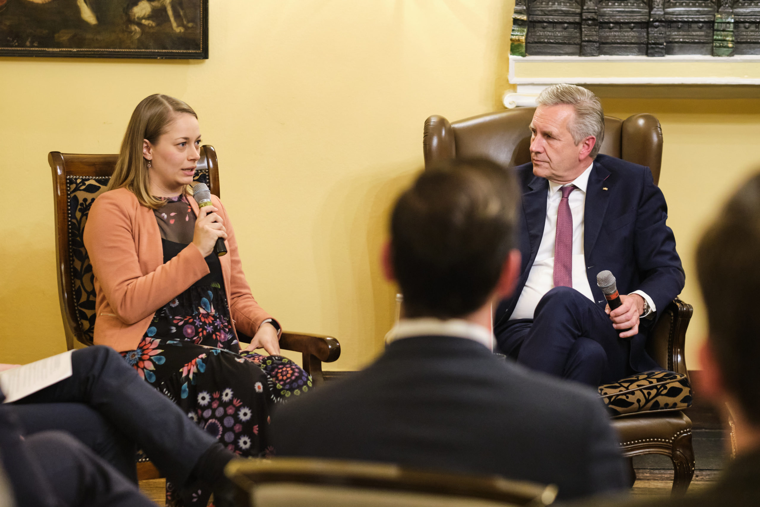 Themenschwerpunkt dieses Kamingesprächs, zu dem Wirtschaftsjuniorinnen und -junioren aus dem gesamten Bundesgebiet angereist sind, waren u. a. die Fragen, wie Europa nach der Ära Merkel aussehen werde und welche Rolle das transatlantische Bündnis künftig spielen werde. Ein bedachter Umgang mit außenpolitischen Partnern wurde hierbei ebenso thematisiert wie eine zukunftsfähige Gesellschaftspolitik über Grenzen hinweg. Gemeinsam wurden Überlegungen angestellt, welchen Beitrag die Zivilgesellschaft bzw. die Wirtschaftsjunioren und JCI dazu leisten können und ausgewählte WJ-Projekte zur Förderung der internationalen Verständigung auf Kreis-, Landes- und Bundesebene vorgestellt.