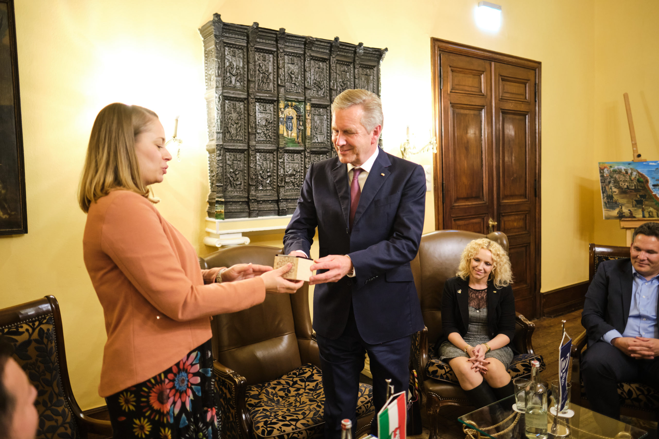 Am 02. Nov. 2021 wurde den Wirtschaftsjuniorinnen und -junioren die Ehre zuteil, einen ganz besonderen Gast begrüßen zu dürfen. Im Rahmen der regelmäßig auf Schloss Hugenpoet stattfindenden politischen Kamingespräche hatten die Teilnehmerinnen und Teilnehmer die Möglichkeit, sich mit unserem Altbundespräsidenten Christian Wulff in exklusiver Atmosphäre zum Thema „Internationale Verständigung“ auszutauschen.