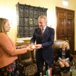 Am 02. Nov. 2021 wurde den Wirtschaftsjuniorinnen und -junioren die Ehre zuteil, einen ganz besonderen Gast begrüßen zu dürfen. Im Rahmen der regelmäßig auf Schloss Hugenpoet stattfindenden politischen Kamingespräche hatten die Teilnehmerinnen und Teilnehmer die Möglichkeit, sich mit unserem Altbundespräsidenten Christian Wulff in exklusiver Atmosphäre zum Thema „Internationale Verständigung“ auszutauschen.