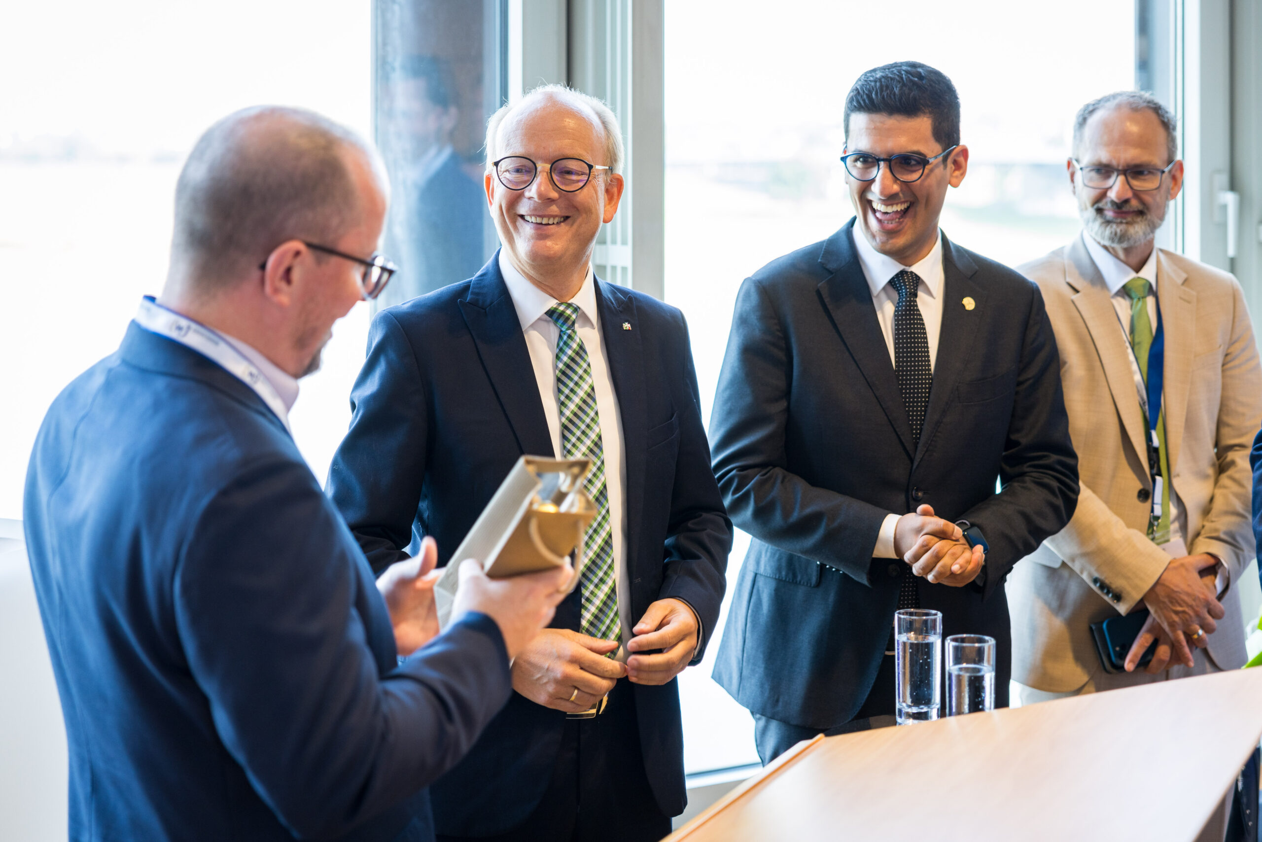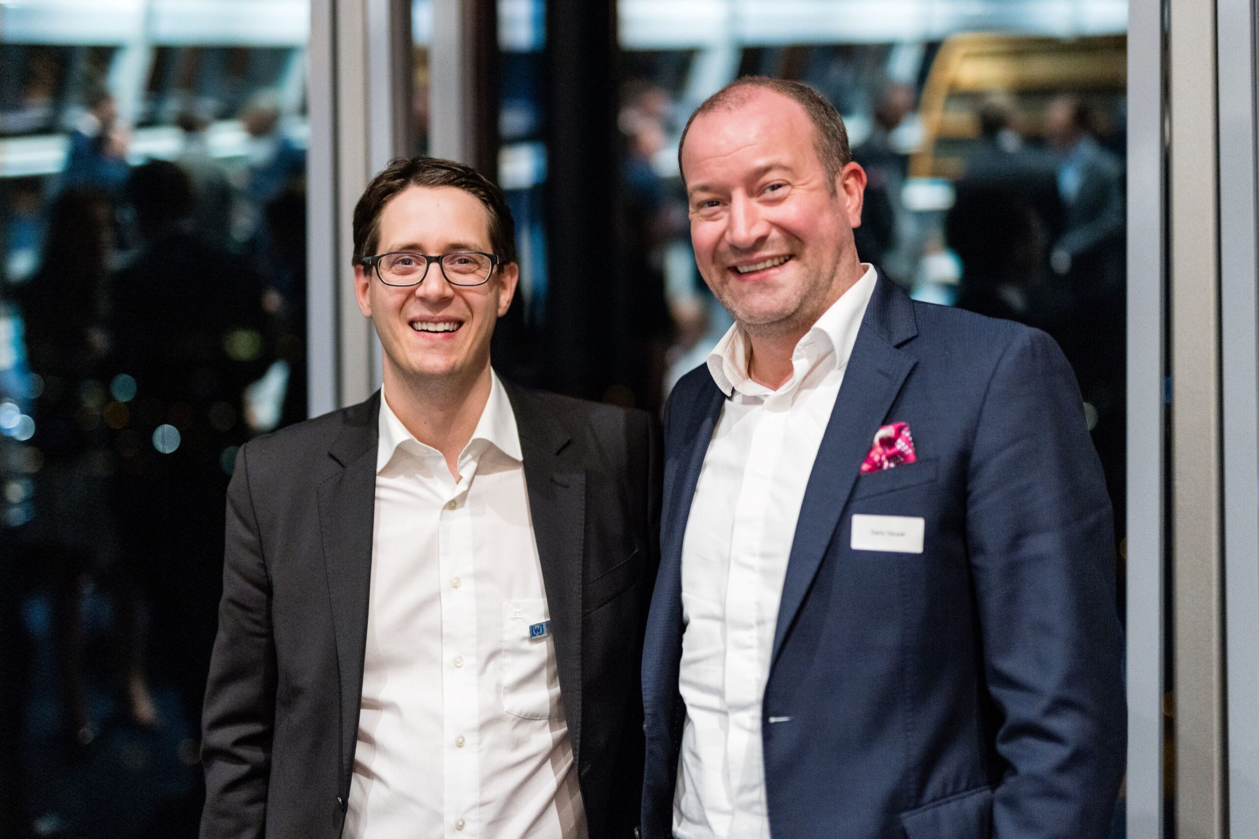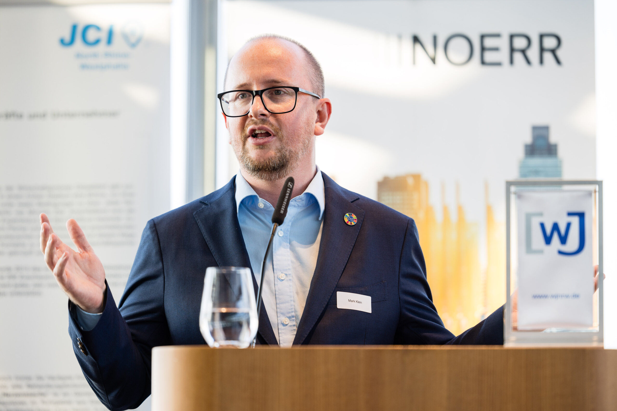 Im Anschluss an die spannende Diskussion wurden die Thematik und die Eindrücke des ersten KHT-Tages bei einem Get-together vertieft und natürlich blieb auch Zeit für den ungezwungenen Austausch zwischen junger Wirtschaft und Landespolitik. Ein besonderer Dank gilt hier auch wieder der Kanzlei Noerr LLP und insbesondere Herrn Dr. Alexander Hirsch, welcher den Parlamentarischen Abend seit dem ersten Tag durch die vertrauensvolle Bereitstellung der Räumlichkeiten unterstützt: Mark Klein überreichte dem sichtlich überraschten Dr. Hirsch die Landesehrung der Wirtschaftsjunioren NRW für die außerordentliche Unterstützung der Aktivitäten des WJNRW Landesverbandes.