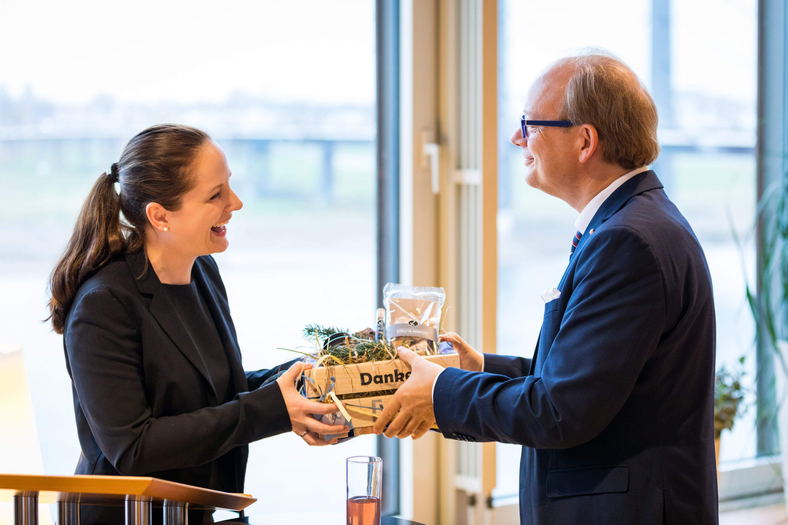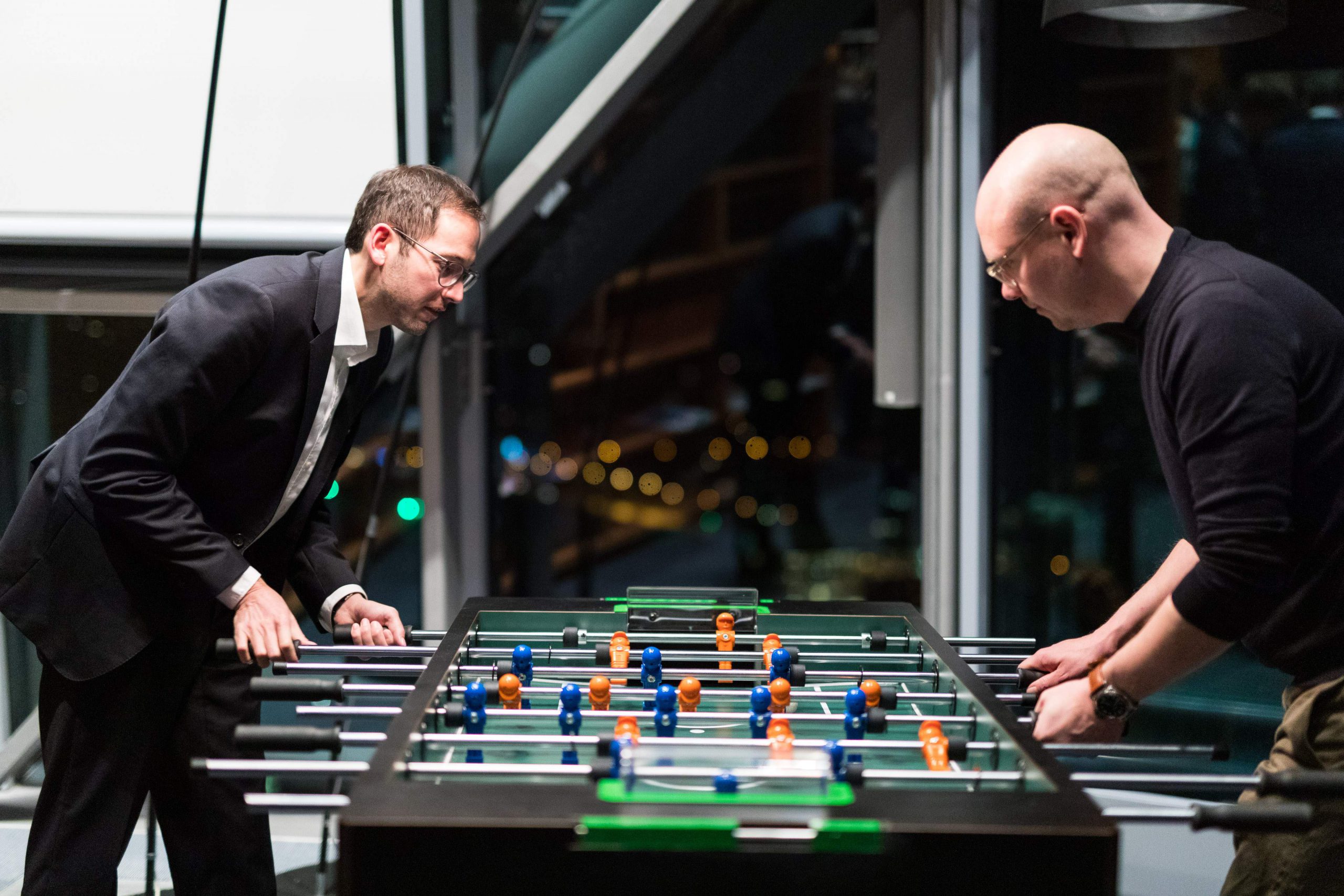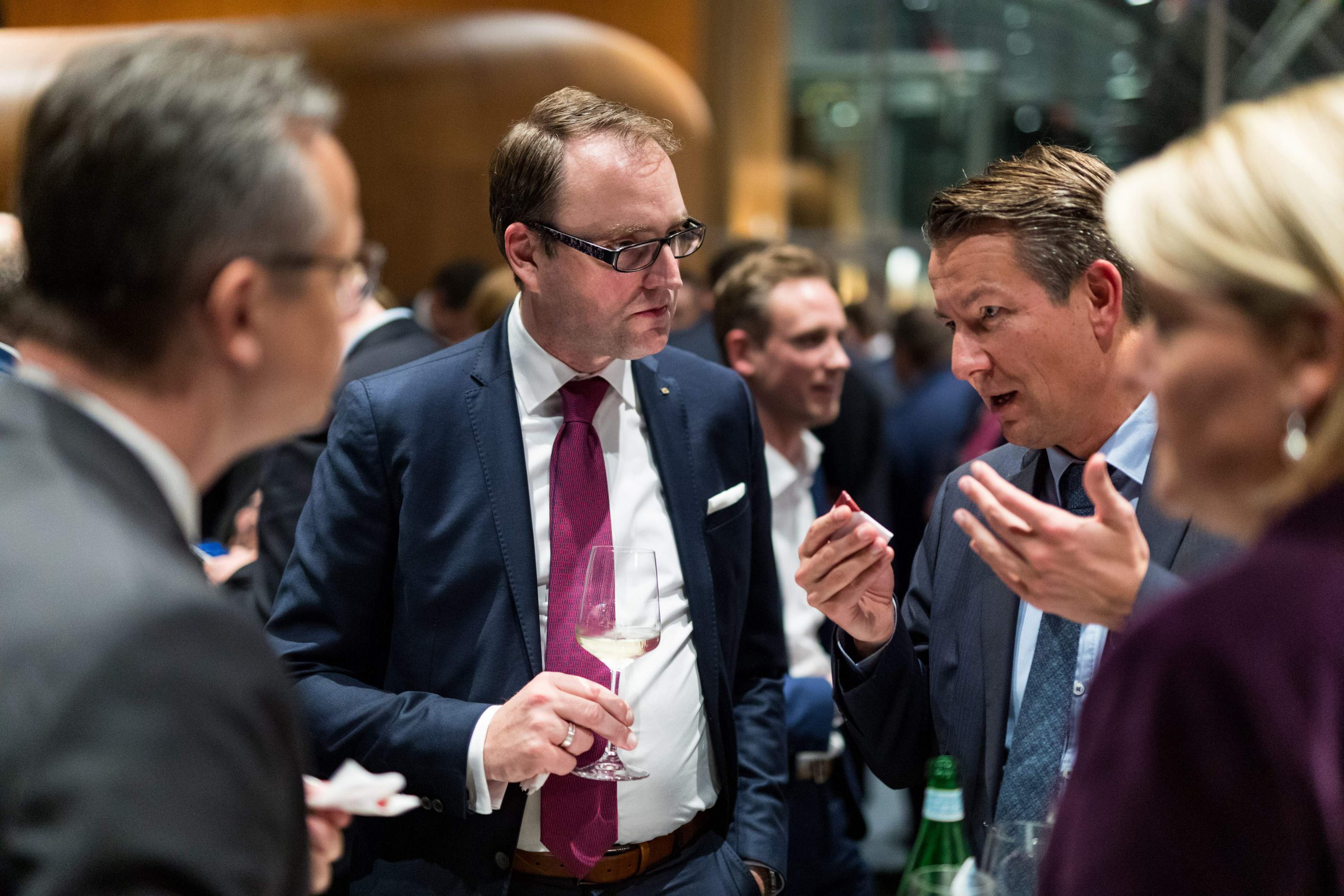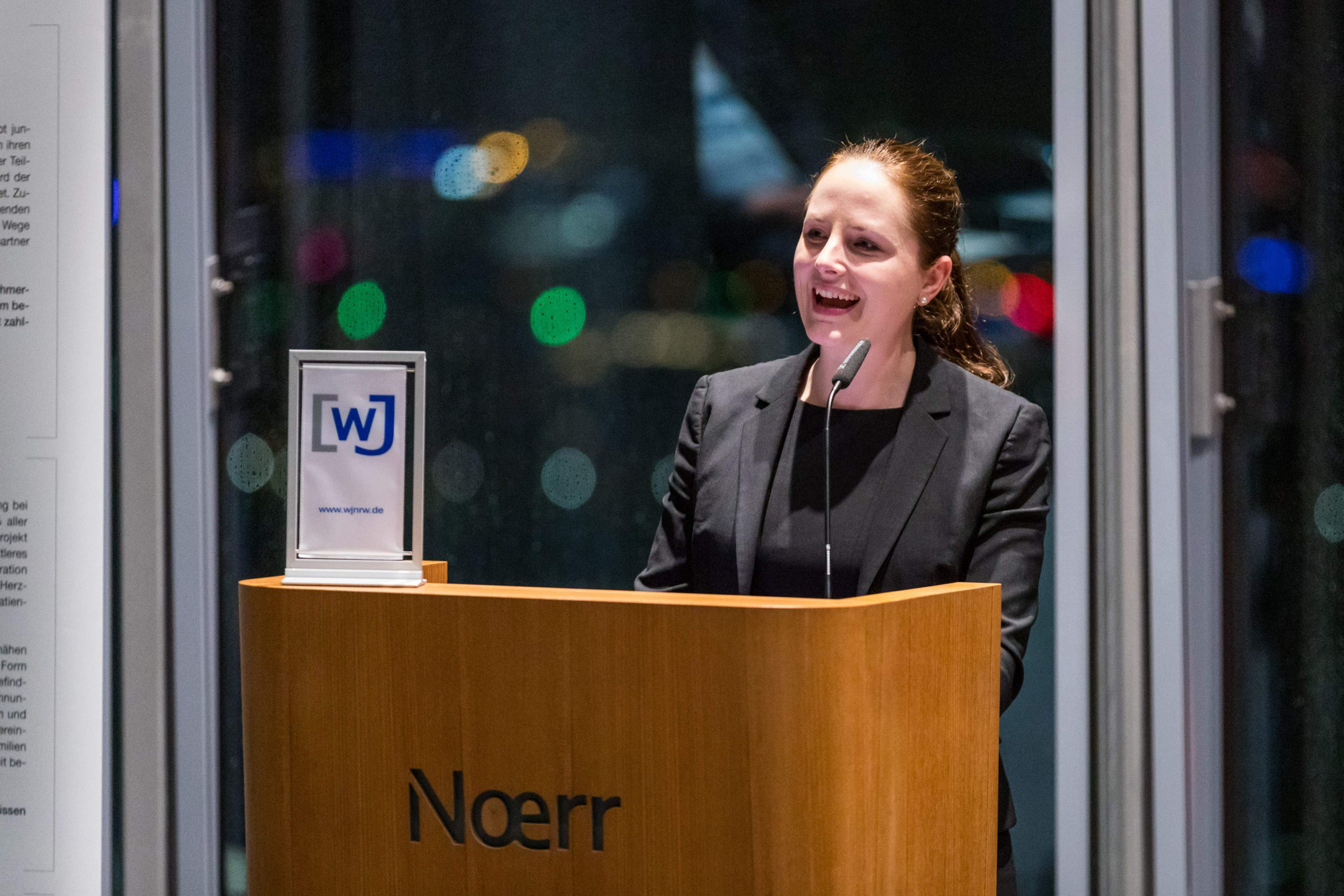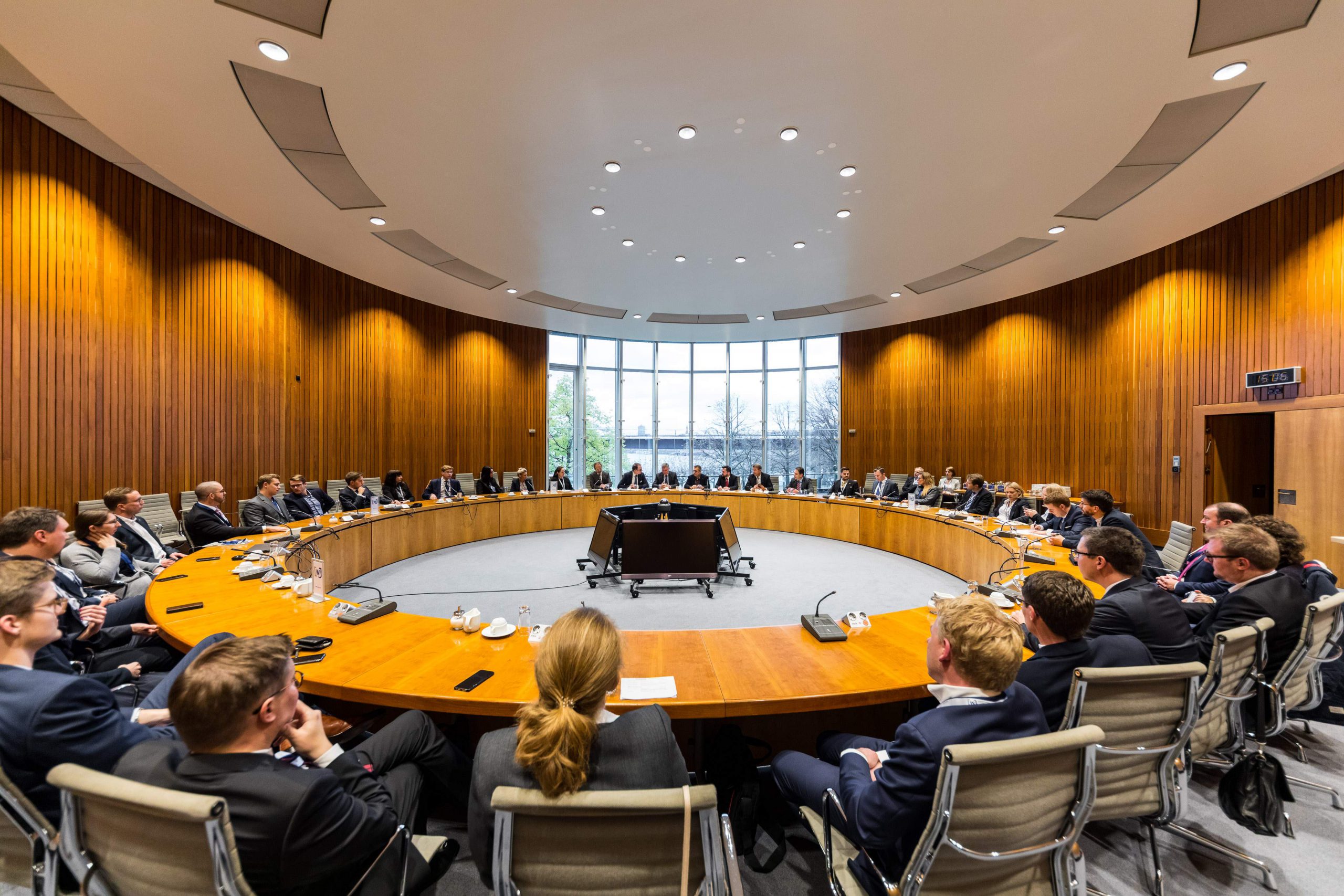 Am Abend bot das „Skydeck“ der Kanzlei Noerr in der 19. Etage des „Sign!“, das mit 74 Metern höchste Gebäude im Düsseldorfer Medienhafen, erneut eine spektakuläre Kulisse für eine Podiumsdiskussion  im Rahmen des 2. Parlamentarischen Abends der Wirtschaftsjunioren NRW. Hierzu waren alle Landtagsabgeordneten sowie Wirtschaftsjunioren, unabhängig von einer Teilnahme am Know-How-Transfer, geladen und insgesamt folgten etwa 120 Teilnehmer – ungefähr zur Hälfte aus der Landespolitik – dieser Einladung. Hierzu zählten auch Bodo Löttgen (Fraktionsvorsitzender CDU), Christof Rasche (Fraktionsvorsitzender FDP) sowie Matthias Kerkhoff (Parlamentarischer Geschäftsführer CDU).