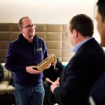 Am ersten Abend folgte dann beim traditionellen politischen Kamingespräch ein weiterer, persönlicher Austausch mit Oliver Krischer, Minister für Umwelt, Naturschutz und Verkehr des Landes Nordrhein-Westfalen. Auch wenn die beiden Städte Köln und Wermelskirchen weniger als 30 km Luftlinie voneinander entfernt liegen, brauche es mit öffentlichen Verkehrsmitteln mehr als zwei Stunden. Dies stellte der Minister eingangs des Gesprächs bedauernd fest und betonte sodann die dringende Notwendigkeit des flächendeckenden Ausbaus von Radverkehrswegen sowie des öffentlichen Nahverkehrs in NRW. Doch neben der Schaffung neuer Verkehrswege müsse die bestehende Infrastruktur weiter erhalten werden, so Krischer. Denn auf die Rahmedetalbrücke in Lüdenscheid folgen in den nächsten zehn Jahren mehr als 800 weitere Brückensanierungen alleine in Nordrhein-Westfalen. Der Minister zeigt sich jedoch trotz aller Herausforderungen optimistisch beim Ausblick auf die Themen rund um nachhaltige Mobilität und den Ausbau und Erhalt der Infrastruktur in Nordrhein-Westfalen.