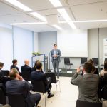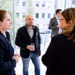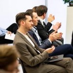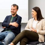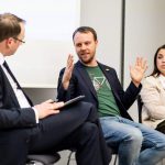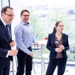 „Wir müssen in Europa weg von der Personenwahl und dazu kommen, Programme umzusetzen“, sagte Clarisse Höhle, FDP-Kandidatin zur Europawahl, auf dem Podium der Wirtschaftsjunioren NRW. Ihr Gegenüber, Daniel Freund von B90/Die Grünen, pflichtete ihr in dieser Sache – und im Übrigen, für die Zuhörer erstaunlich, in vielen anderen Themen auch – bei. Beide waren im Rahmen der Veranstaltung „Junge Wirtschaft trifft junge Politik“ in die NRW.BANK nach Düsseldorf geladen, wo sie rund 40 interessierte Zuhörer aus Kreisen der Wirtschaftsjunioren fanden. Zunächst stellten sie sich rund eineinhalb Stunden lang den Fragen von Moderator und Organisator Patrick Hahne, dann in kleineren Runden im „Speed-Dating“ dem direkten Austausch mit den WJ-Mitgliedern.