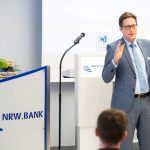 Bereits zum zweiten Mal waren die WJ für ihren Austausch zwischen Wirtschaft und Politik in der NRW.BANK zu Gast. Ging es vor einem Jahr noch im Dialog mit Abgeordneten des Landtags um eher regionale Themen, konnten die Inhalte diesmal das Globale in den Fokus nehmen. In ihrer Ansprache ging die WJ-Landesvorsitzende Jeannine Budelmann bereits darauf ein, wie wichtig Europa für die Wirtschaft in NRW ist. Viele Vorzüge des geeinten Europa seien inzwischen so selbstverständlich, dass man sich ihr Fehlen kaum noch vorstellen könne – auf der anderen Seite aber gerate ihr Nutzen in Vergessenheit. Im Plenum saßen beispielsweise auch einige junge Menschen, die ein Europa mit Grenzkontrollen nie kennen gelernt hatten.