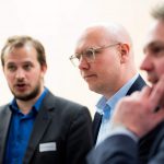 Patrick Hahne leitete das Gespräch mit hoher Sachorientierung durch Themen wie Veränderungsdrang in Europa, Wahlmüdigkeit in der Bevölkerung, inner- und außereuropäische Grenzen, Freihandelsabkommen, Urheberrecht, Digitalsteuer, Fachkräftemangel, Bürokratie und – ja, auch hier kam man nicht ganz daran vorbei – den Brexit. Nicht selten erwähnte er dabei: „Auch hier werde ich bei Ihnen wohl keinen Disput anstoßen.“ In der Tat waren sich die beiden in vielen Punkten sehr einig, wenngleich an einigen Stellen Detailfragen voneinander abwichen. Davon zeigten sich viele der Anwesenden durchaus überrascht, war man doch im Vorfeld davon ausgegangen, dass gerade diese beiden Parteien doch recht weit auseinander liegen müssten in ihren Positionen. Uneinig waren sich Höhle und Freund beim Freihandel: Clarisse Höhle sprach sich klar für derartige Abkommen aus und bedauerte das Scheitern der TTIP-Verhandlungen: „Es muss ja nicht jeder eigene Wunsch erfüllt werden. Wenn auf beiden Seiten nur 90 Prozent der Forderungen erfüllt sind, ist das auch gut.“ Worauf Daniel Freund erwiderte: „Freihandel ist grundsätzlich in Ordnung, aber nicht zu jedem Preis.“ Einigkeit hingegen herrscht darin, dass die Binnengrenzen Europas offen bleiben müssen, aber mehr gemeinsam dafür getan werden müsse, sich den Außengrenzen zu widmen. Ebenso ist es für beide Kandidaten unumstritten, dass auch Wege gefunden werden müssen, weltweite Großkonzerne am Gemeinwohl zu beteiligen. Ob die Digitalsteuer dafür der richtige Weg ist, wurde von beiden eher kritisch gesehen.