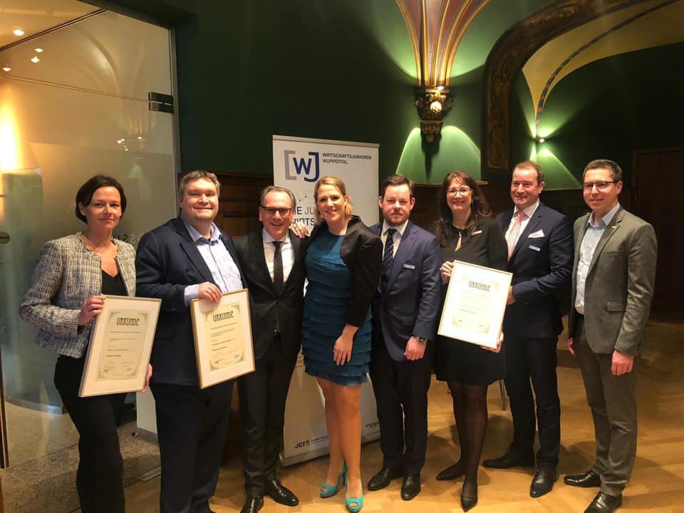 Am 2. Februar hat unser Landesvorsitzender Thomas Müller am Neujahrsempfang der Wirtschaftsjunioren Wuppertal teilgenommen. Ganz besonders freute er sich darüber, seinem Landesvorstandskollegen Florian D. Schulz sowie Constanze Compes die Goldene Juniorennadel, die höchste Ehrung der Wirtschaftsjunioren Deutschland, sowie die silberne Juniorennadel an Marion Rodine verleihen zu dürfen.