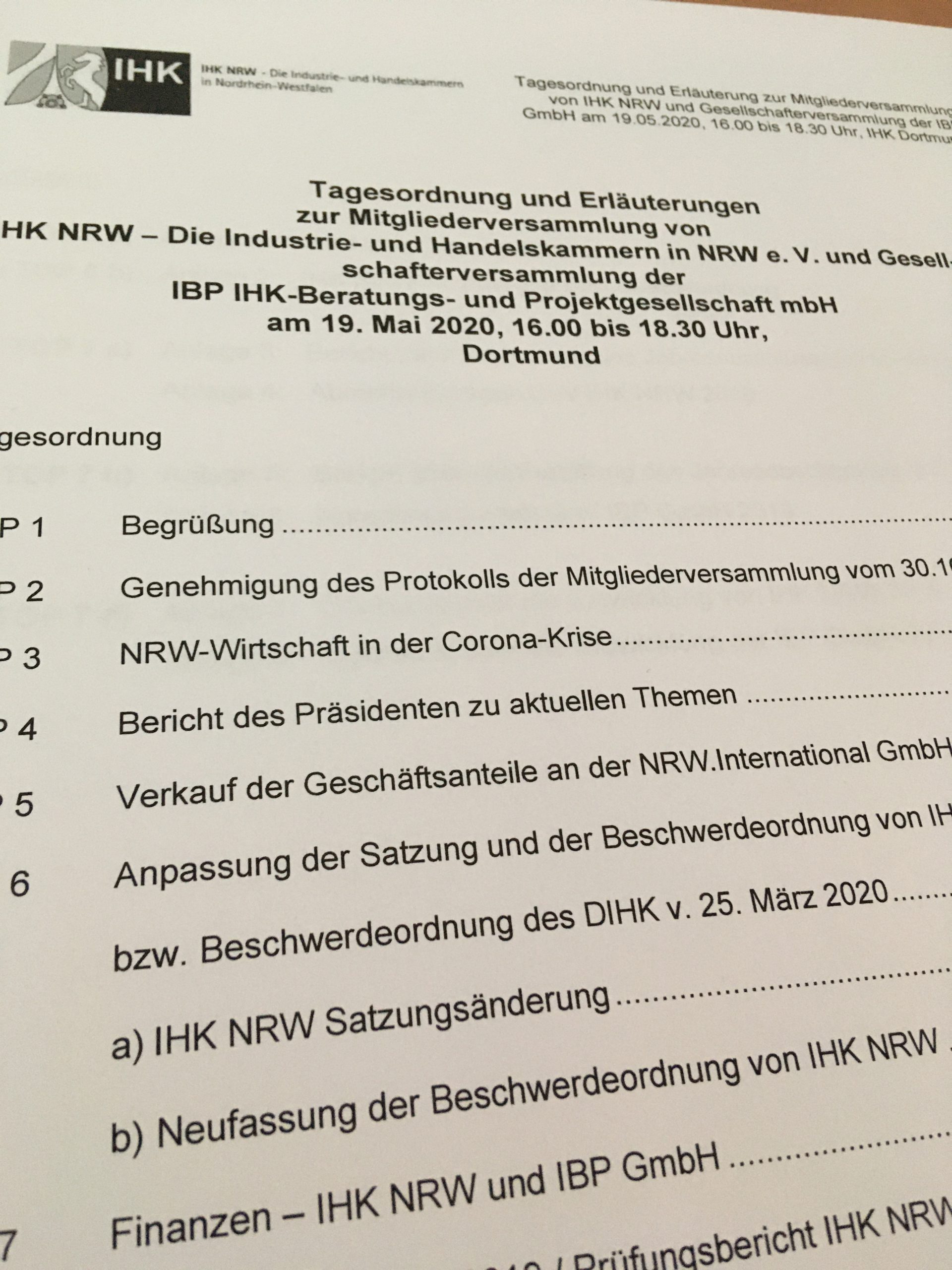 Teilnahme an IHK-NRW Mitgliederversammlung