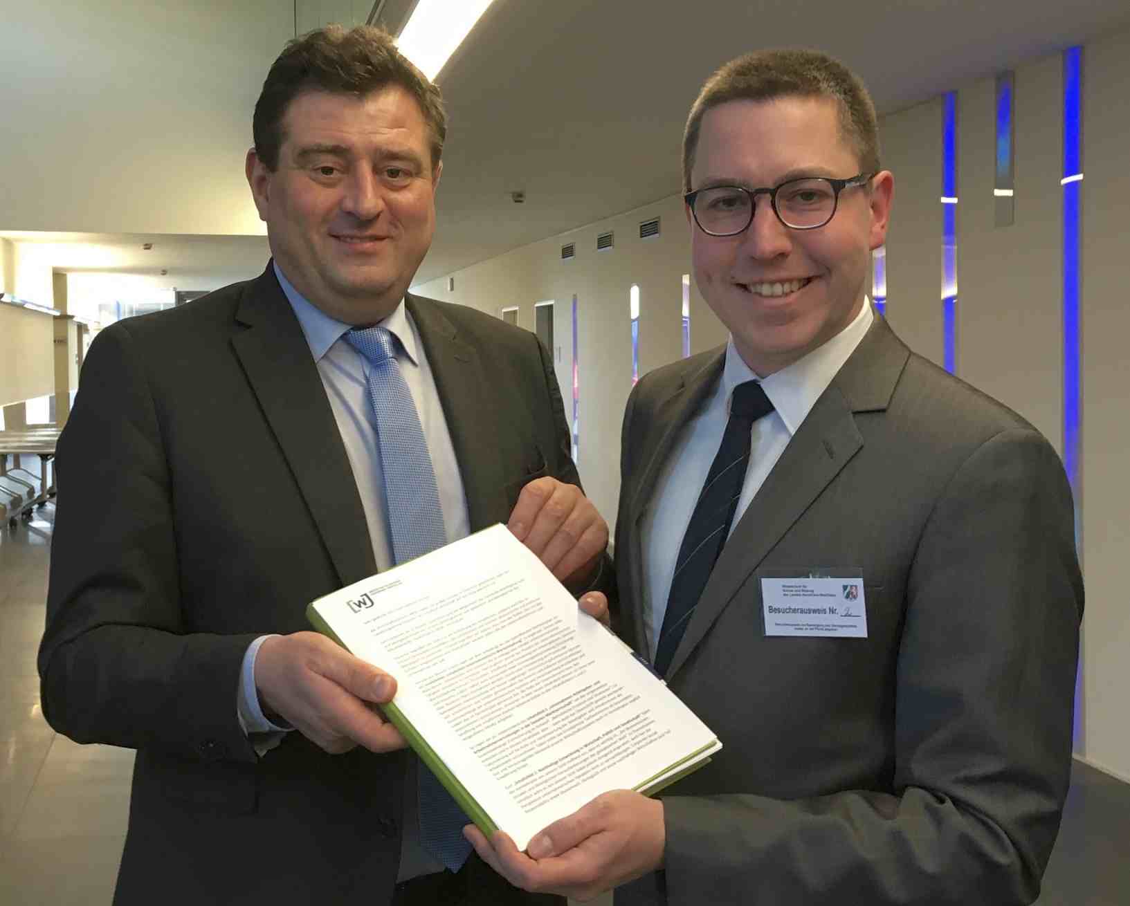Matthias Richter, Staatssekretär im Ministerium für Schule und Bildung des Landes Nordrhein-Westfalen hat zur Verbände-Beteiligung zum Entwurf des Kernlehrplans für die Sekundarstufe 1 im neuen Schulfach "Wirtschaft" eingeladen. Unser WJ NRW Landesvorsitzender Thomas Müller übergab dem Staatssekretär zum Abschluss der Diskussion eine entsprechende Stellungnahme zum Thema. [...]