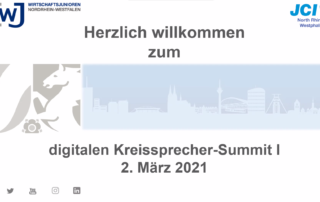 Mit den Worten: "26 Teilnehmer ist eine herausragende Quote für eine digitale Veranstaltung am Dienstagabend!" leitet Dr. Julius Busold, Landesvorsitzender der Wirtschaftsjunioren 2021 in den ersten gezwungenermaßen digitalen Kreissprecher-Summit (KSSI) ein. In diesem anderen Format [...]